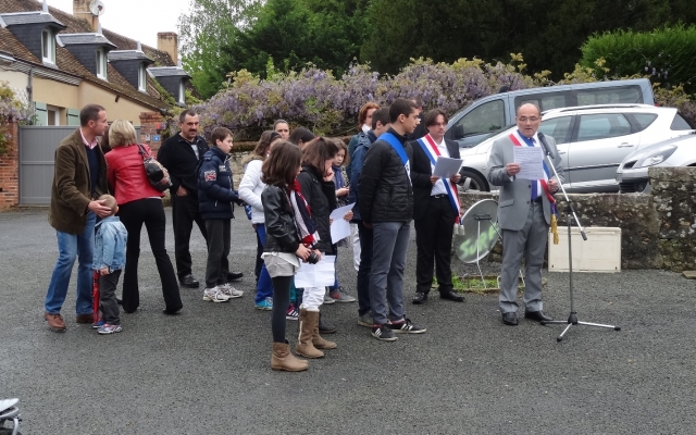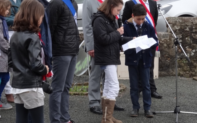 Ce sont ensuite 2 jeunes surfondais, Jeanne et Sacha HAMELIN qui ont fait lecture des noms inscrits sur le monument aux morts rendant ainsi hommage à nos soldats tombés pour la France. M. Dominique GRIGNON et M. Michel MENARD ont ensuite déposé les gerbes de commémoration puis Jacques PROVOST a ensuite joué le chant des partisans à la clarinette. Tous les participants ont ensuite pu chanter notre hymne national.